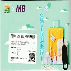 eSim - 24XMB 日本韓國 極速5G 2日 真無限 數據卡