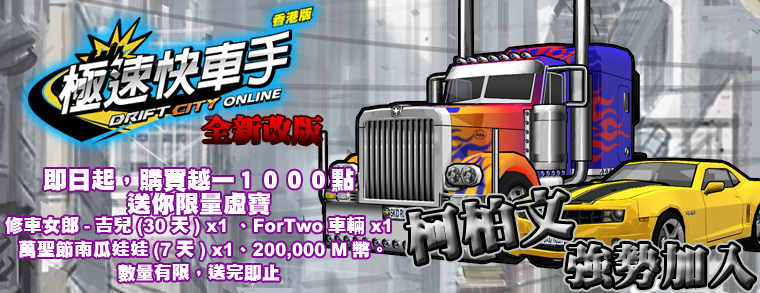 越一點數今日上架, 凡購買1000點均可獲贈極速賽車手贈品, 送完即止 (2011-08-23)