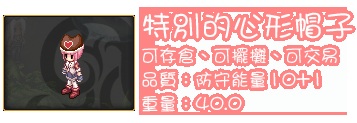 凡購買任何U1產品均附送魔境傳說虛寶: 不過要注意是此虛寶序號,每個遊戲帳號只能輸入及使用一次啊 以下是道具的說明資料(可看附件) 道具名字:心型帽子 類型:頭部飾品 使用等級:LV1或以上 道具限制:此道具可存倉,可擺攤,可交易 道具能力:防守能量10+1 重量:400 請買完U1 點數後, 在聯絡我們填上資料向我們索取, 在辦公時間內會EMAIL 寄出虛寶, 謝謝