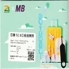 eSim - 24XMB 日本韓國 極速5G 8日 真無限 數據卡